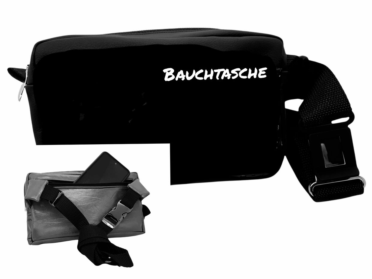 Die Bauchtasche hat ein Frontfach und ein rückseitiges Reißverschlussfach.