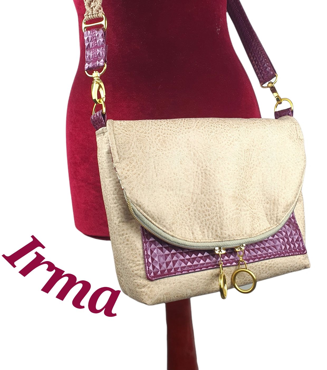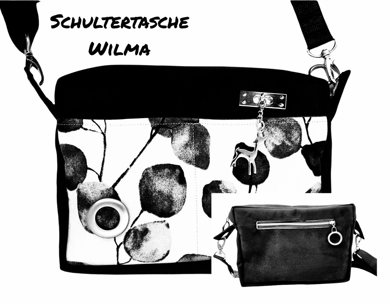 Die Tasche ist eine Basic-Umhängetasche mit Frontfach, abwaschbarem Innenfutter und passendem ChiChi.