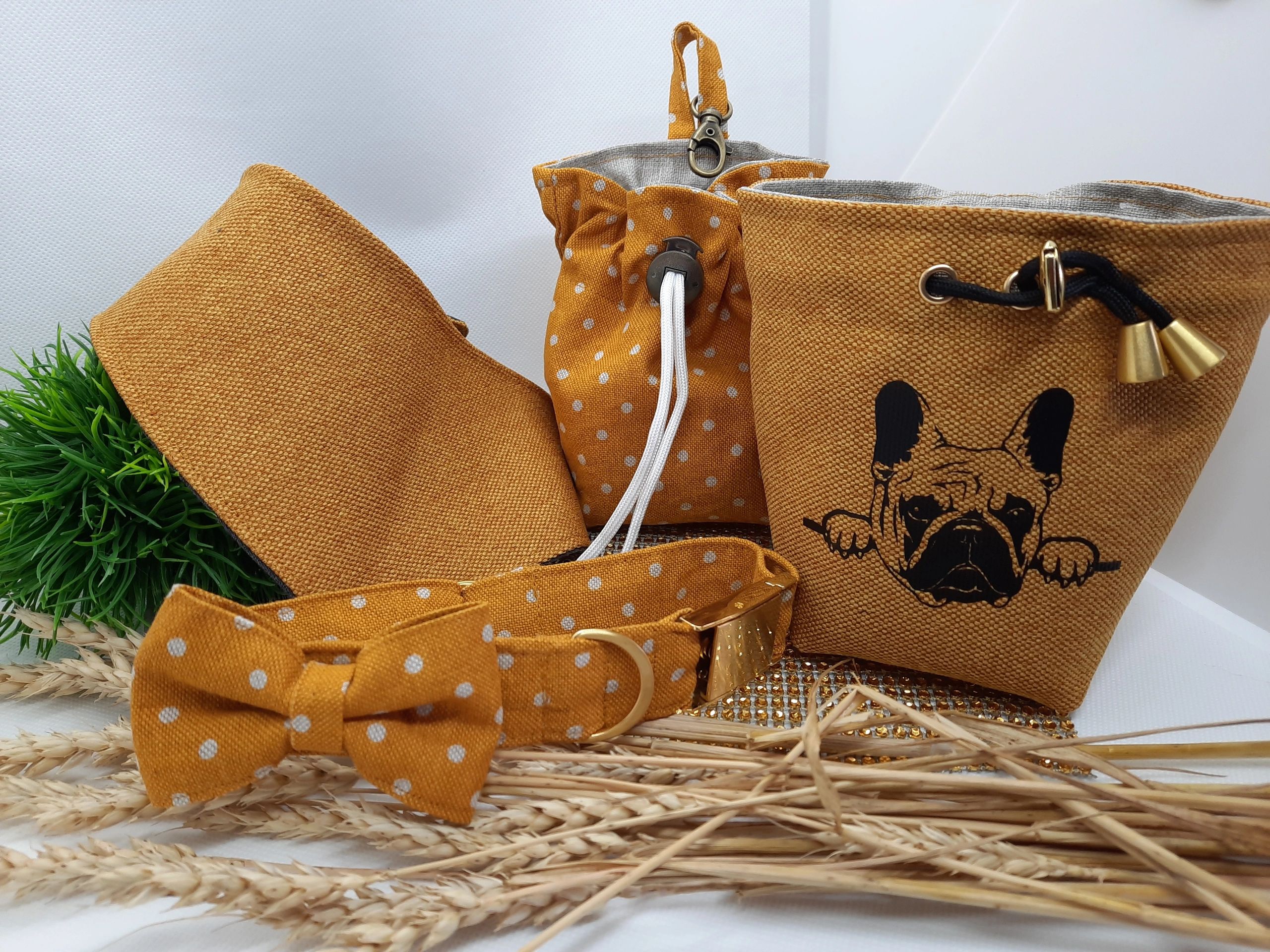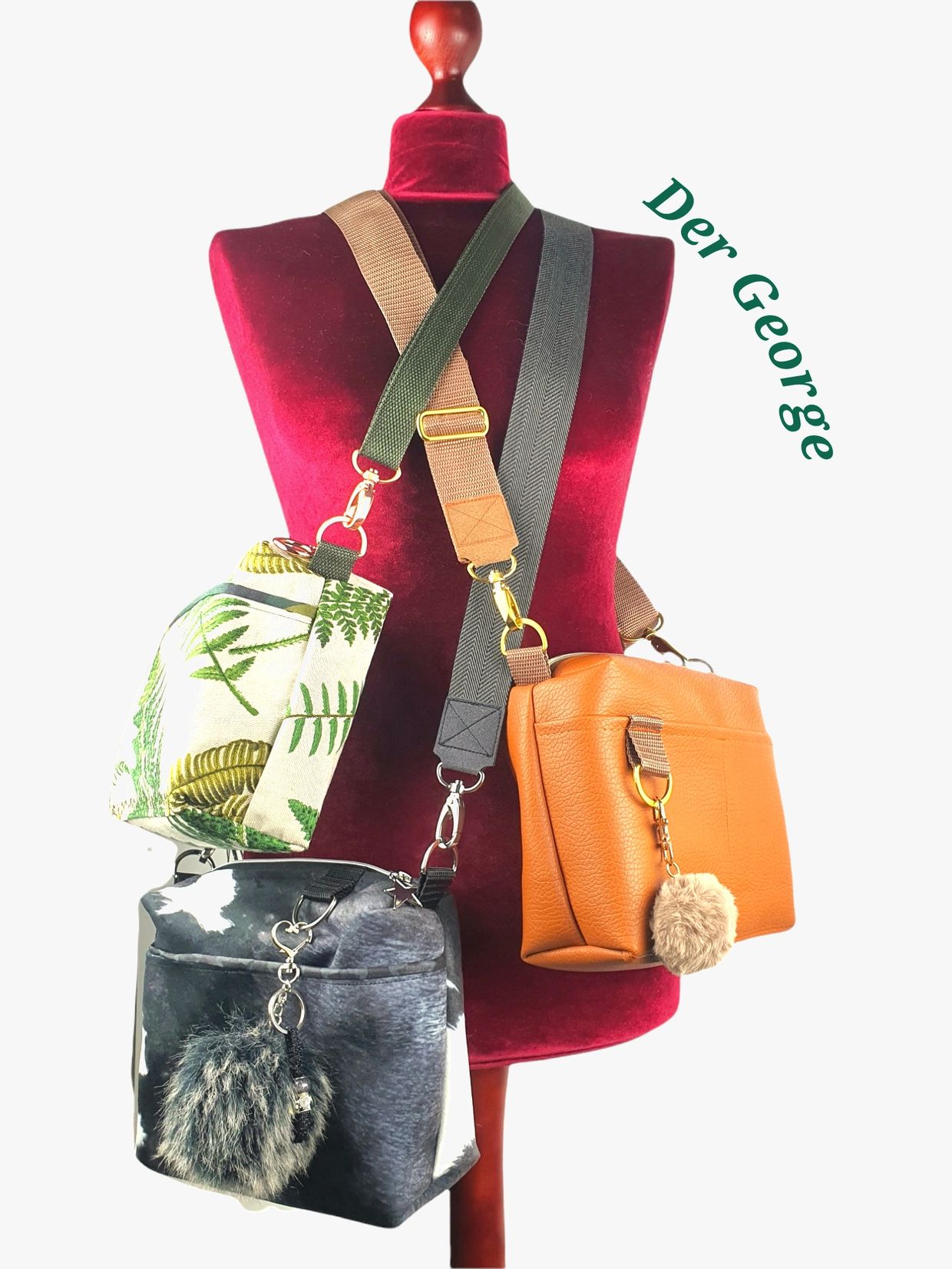 Stoff, Kunstleder, Karabiner können selbstverständlich frei gewählt werden.